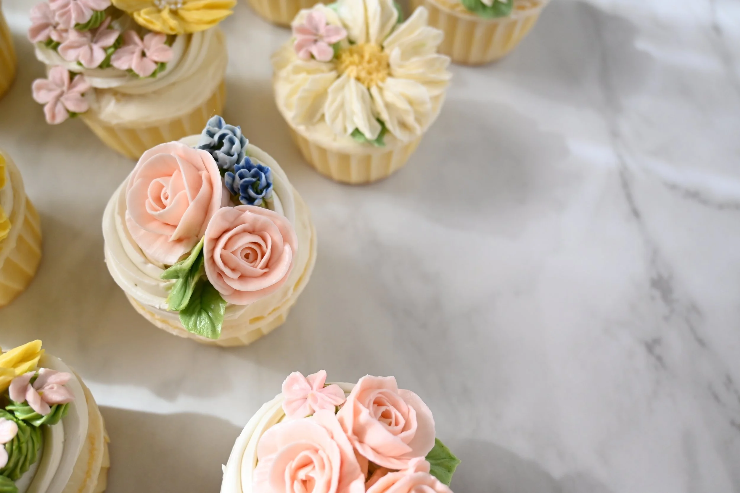 Our bestselling bespoke cupcakes featuring delicate piped florals on tender, gourmet cake.
